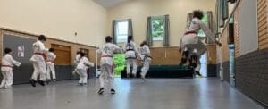 Red & Black belt cadets practising their jumping drills ready for their flying kicks.