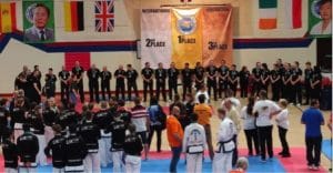Day One would see the Under-14 and Senior competitions take place. We were welcomed to the competition by the Lord Mayor of Cork, president of UK ITF Grand Master Nicholls, and Master O’Brien, who hosted us for the competition. Team UK settled into a corner of the arena and the competition got under way.