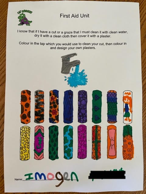 Last week you were talking about why it’s important to clean up cuts and grazes. Your colouring sheet was full of different plasters for you to colour in. They were all fabulous! The winner this week is Haya – Well done and thank you to all of you! There is no sheet this week as it’s half term, but classes are on as normal.